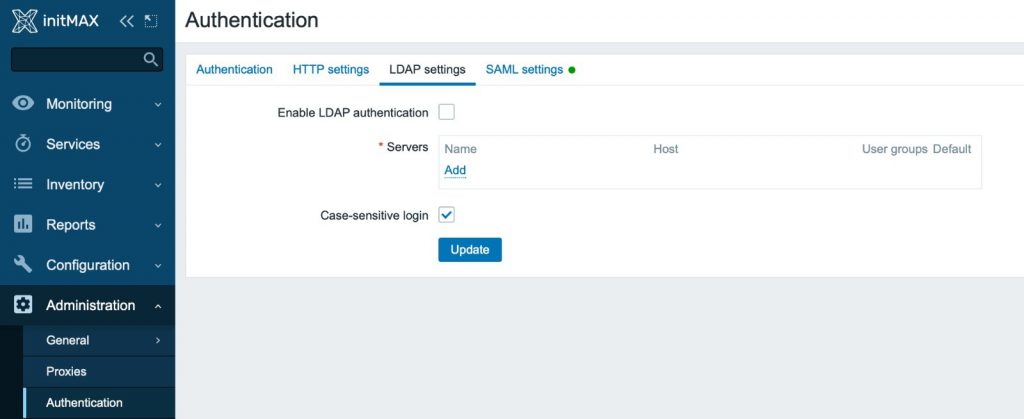 V nové verzi Zabbixu se upravila možnost připojit Zabbix na více než jeden LDAP server. Toto nastavení najdete v Administrace > Authentifikace > LDAP nastavení > Nový LDAP server.